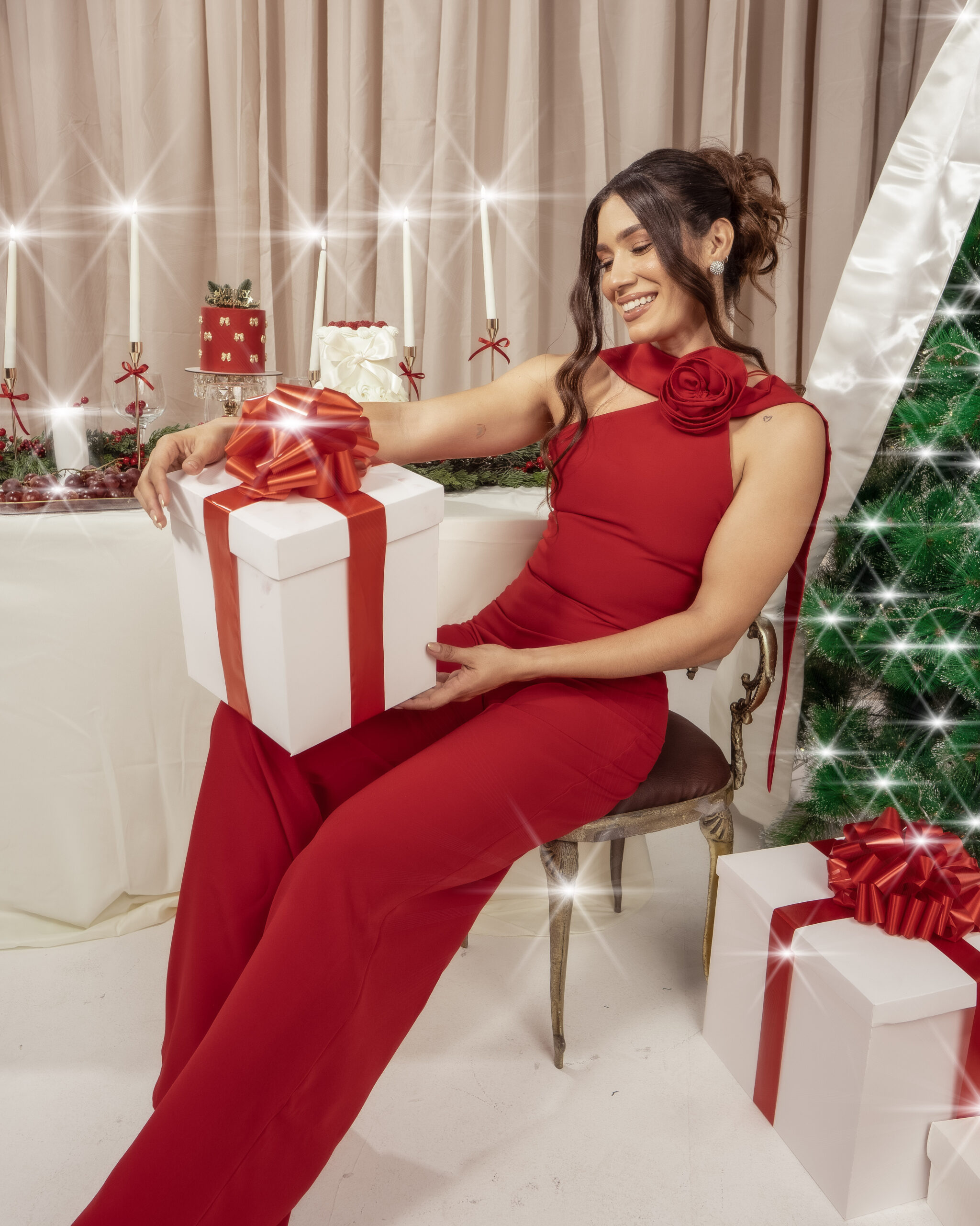 Jumpsuit elaborado en 97% poliester y 3% spandex. Este enterizo asimétrico con detalle de flor en el escote es la definición perfecta de elegancia y fuerza femenina. Su diseño estilizado realza la figura con un toque sofisticado y moderno, ideal para destacar en celebraciones especiales o eventos de noche.