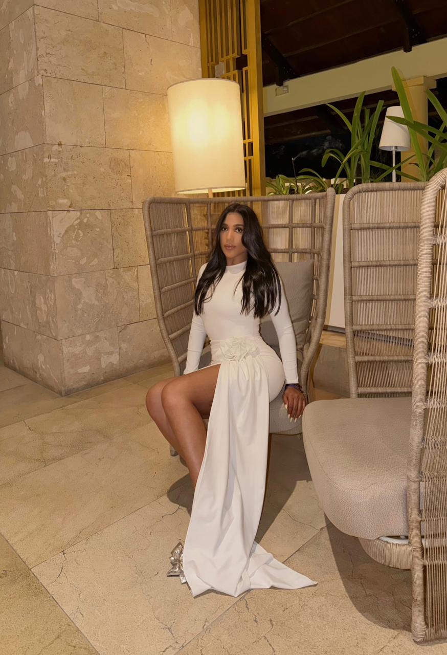 Vestido elaborado en licra. Blanco hueso, silueta perfecta y detalles que elevan el look. Un vestido hecho para brillar con elegancia en cada paso.